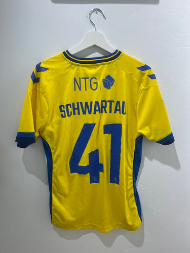 Brøndby hjemmebanetrøje med Schwartau på ryggen, i størrelse M