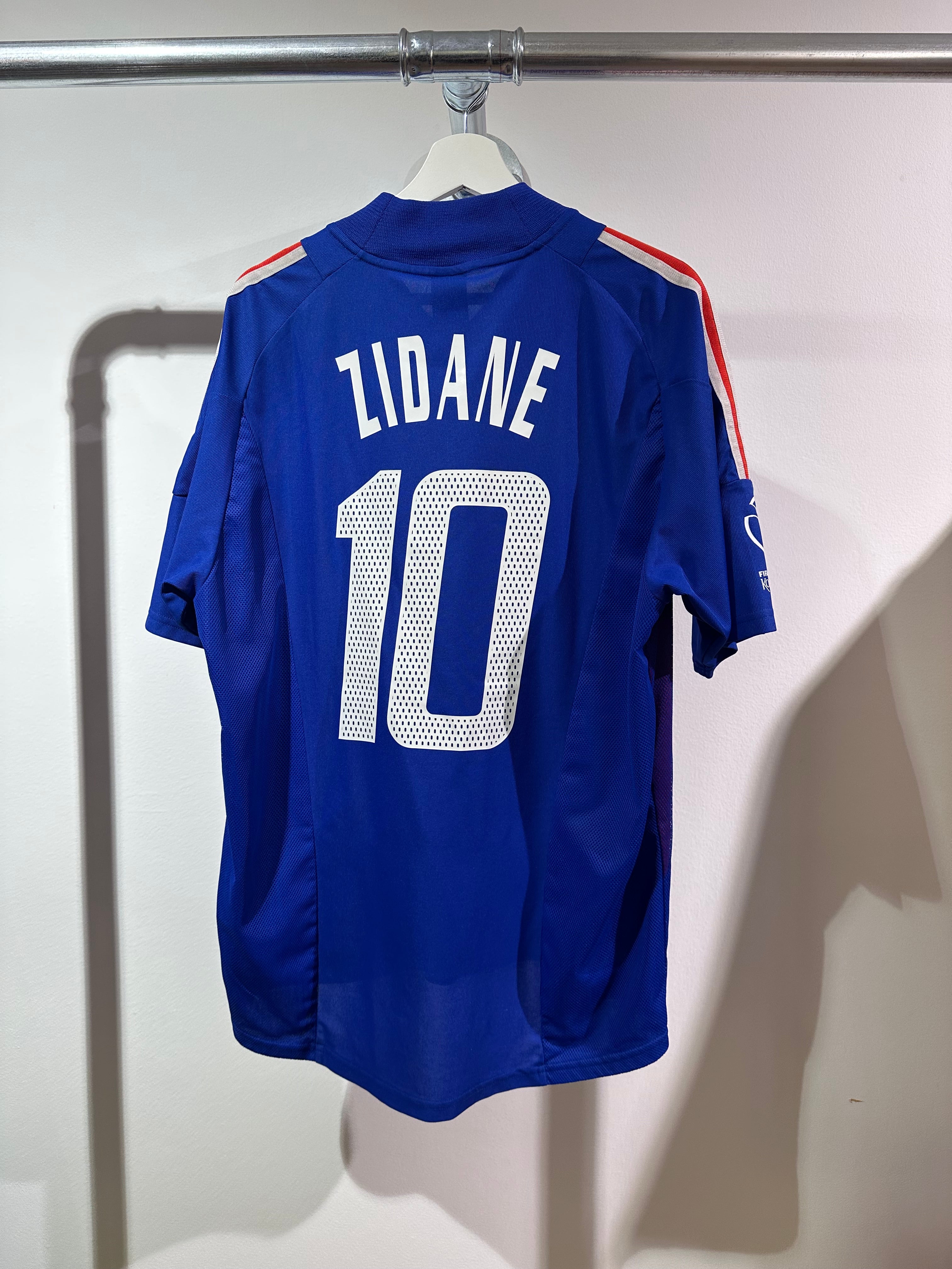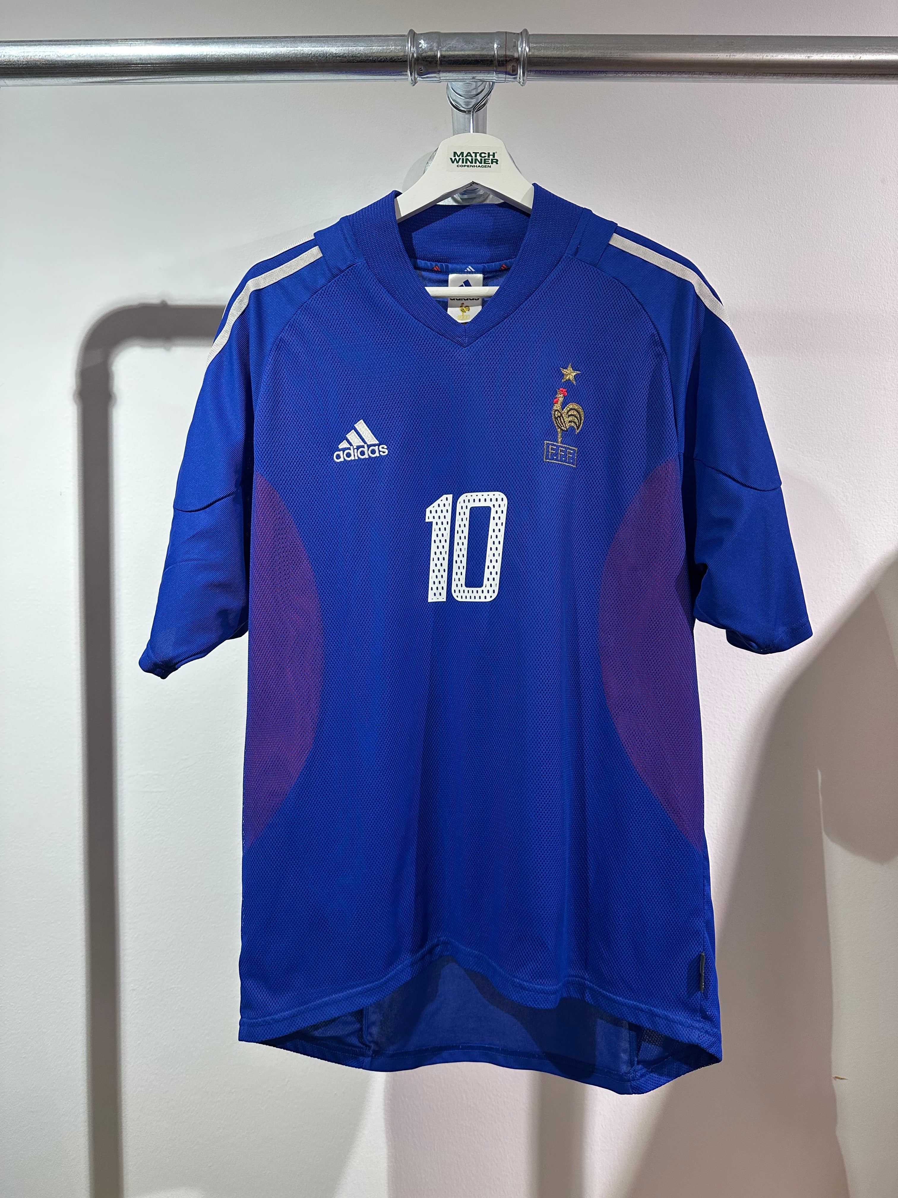 Frankrig hjemmebanetrøje fra 2002 sæsonen med Zidane på ryggen i størrelse Large